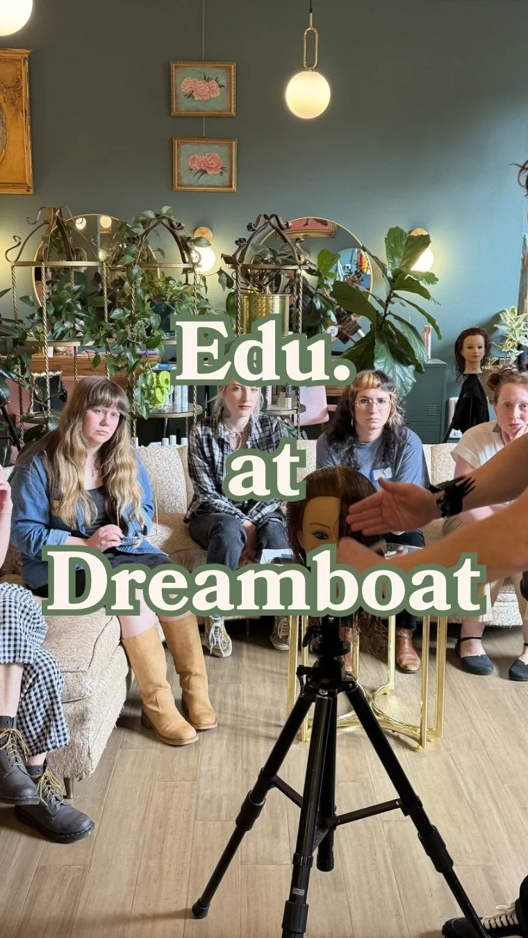 “Dreamboat is my dream salon! I never enjoyed going to salons until I stepped into this beautiful, relaxing, and inclusive space. No harsh lighting, beautifully decorated, with a calming atmosphere that puts you at ease right away. Ashley is so good at what she does. My cut, color, and styling always come out better than what I imagined. She’s kind & down to earth, and we always have fun conversations. Don’t hesitate to make an appointment with any of the talented stylists at Dreamboat - you’ll be hooked!” — Kirsten Hadley